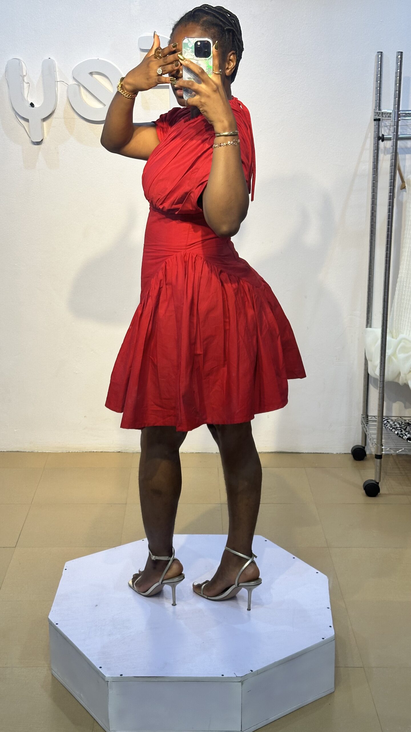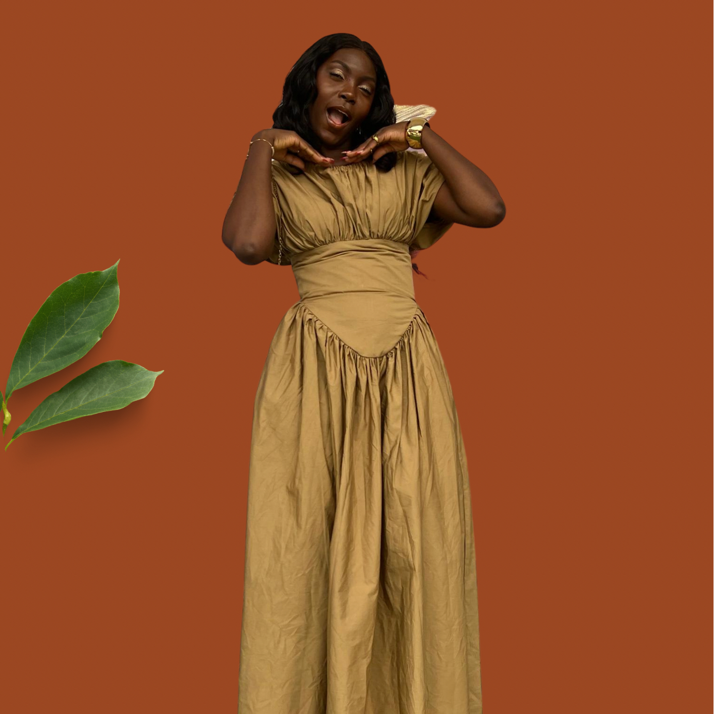 Feminine, structured, and effortlessly flattering, the Olasubomi Dress is crafted from high-quality cotton designed for comfort and elegance. The silhouette features a softly gathered bust, a cinched waist that defines the figure, and a voluminous gathered skirt that moves beautifully with every step.